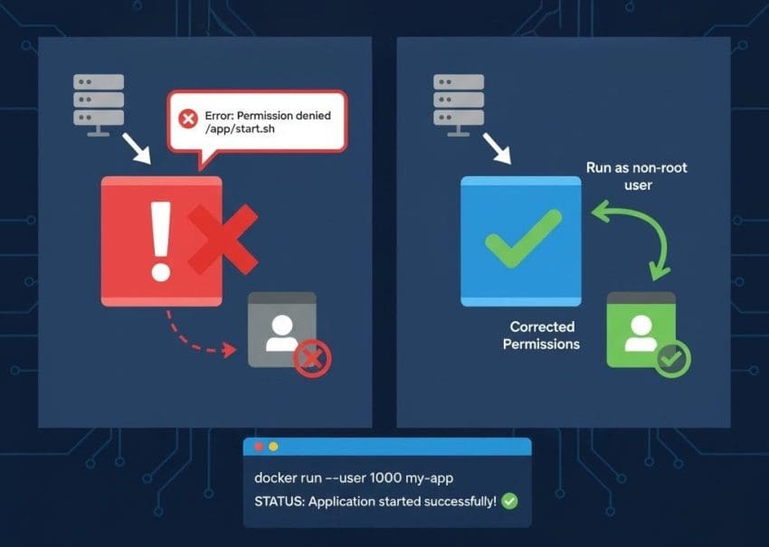 “Permission denied” errors in containers are not uncommon but are easy to fix once the cause is understood. Ensuring that the containerized application files are owned and executable by the correct user prevents such issues from recurring. Proper permission handling also strengthens container security by avoiding unnecessary use of the root user.